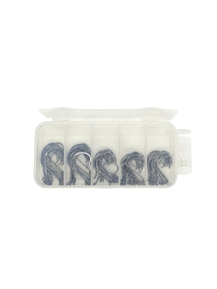 Ett praktiskt set med totalt 75 fiskekrokar, perfekt för både nybörjare och erfarna sportfiskare. Med en bra variation av storlekar är du redo för flera olika fiskesituationer, oavsett om du fiskar i sjö, å eller längs kusten.